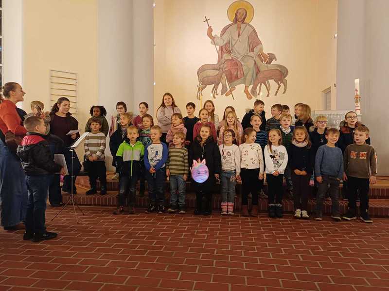 Nach dem Gebet der Hortkinder sangen unsere Schulkinder das Lied "Holt die Lichter aus dem Haus". Der Gottesdienst endete mit den Fürbitten, dem Vaterunser und einem feierlichen Abschlusslied.