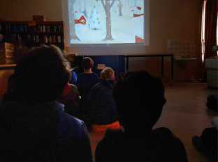 Am Freitag vor den Weihnachtsferien stand für die Schülerinnen und Schüler der 3. Klasse etwas Besonderes auf dem Stundenplan: ein Ausflug in die Selber Stadtbücherei. Untergebracht in zwei Kleinbussen machten sich die Kinder mit ihren Lehrerinnen Frau Preiß und Frau Fraaß auf den Weg zur Bücherei, wo die stellvertretende Leiterin Frau Süß alle freundlich empfing. Passend zum Start in die Ferien- und Feiertage hatte sie ein gemütliches Lesekino zum Buch „Wer hat Weihnachten geklaut?“ vorbereitet. Natürlich durften die Kinder fleißig mitraten und vermuten, was den Waldtieren für ihre Vorbereitungen des Weihnachtsfestes abhandengekommen war und wer der Übeltäter denn sein könnte. Am Ende gab es für das Eichhörnchen und seine Freunde eine große Überraschung, und die Kinder erahnten einen tieferen Sinn von Weihnachten, der in dieser Geschichte in der Gemeinschaft und im Teilen besteht.