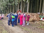 Die Vorschulkinder wurden herzlich mit dem Schullied im Foyer der Schule empfangen. Nach der Begrüßung ging es hinaus in den Garten und auf die Verkehrsinsel, wo der Hausmeister bereits Löcher für die Tulpenzwiebeln und Zwiebeln der anderen Frühblüher vorbereitet hatte.