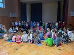 Die Feier begann mit dem gemeinsamen Singen unseres Schulliedes, das alle Schüler mit Begeisterung anstimmten. Die fröhlichen Stimmen hallten durch die Turnhalle und sorgten für eine einladende Atmosphäre.